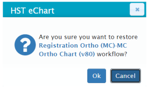• A flyout will appear to confirm the restoration of the workflow. Tap the Ok button to restore the workflow.
