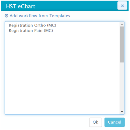 When a workflow is added, the workflow (its BLOCs and organization) are copied from an existing chart template. As such, when adding a workflow the user selects the chart template on which the workflow is based.