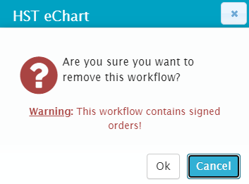 • As a safety feature, if the user tries to remove a workflow where there are existing signed orders, a warning will appear in the confirmation flyout.
