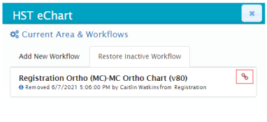 Workflows may also be removed from a chart if needed. After a workflow is removed from a chart, it can be restored (added back into the chart) if desired.