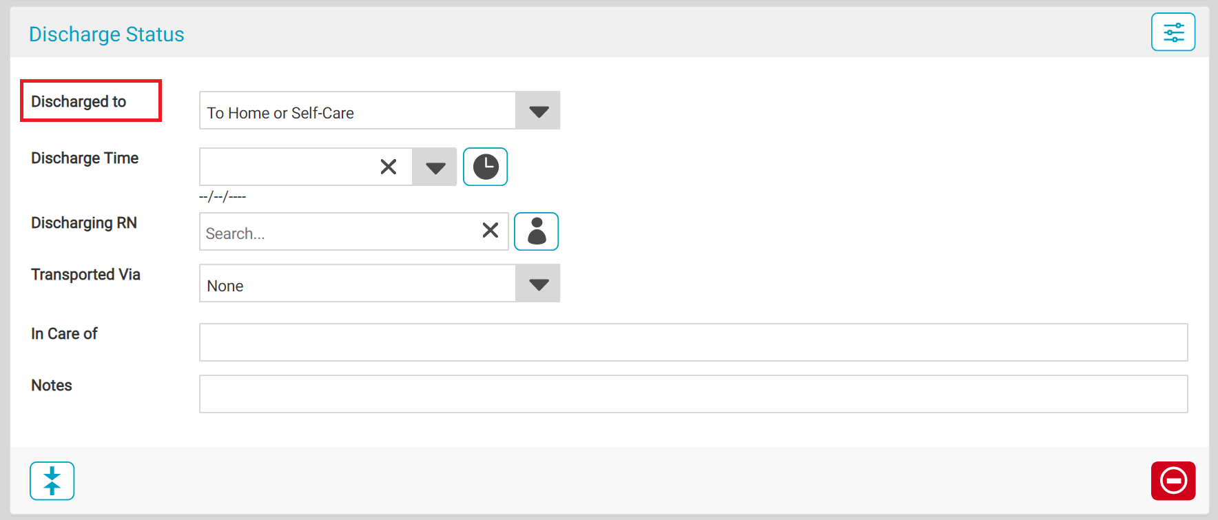- If the patient is transferred to a hospital setting, select the "Discharged to" option which reflects that as that information pulls into HST Practice Management for the claim form.