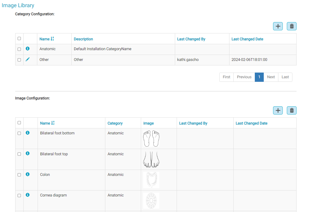 The Image Library contains all images that are available for use in Sketch Pad BLOC 033. The library is also where image categories, which can be associated with library images, are configured. The library comes pre-loaded with some images, but the Center can add additional images. Any added images must be in SVG format.