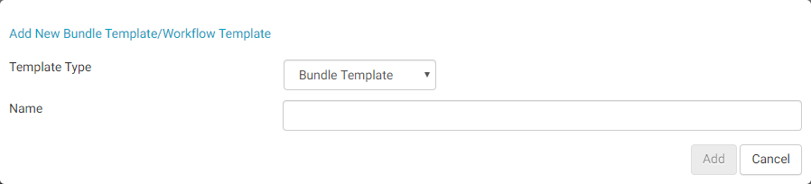 - Tap the add a workflow button to open the following flyout. Select the desired bundle or workflow to add from the drop-down, enter a name, and tap the Save button.