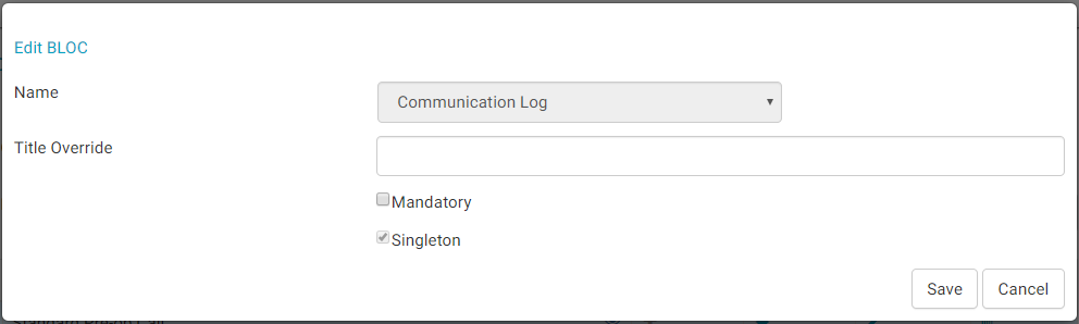 If a BLOC is listed as Singleton, only one of the BLOC can exist in a workflow.