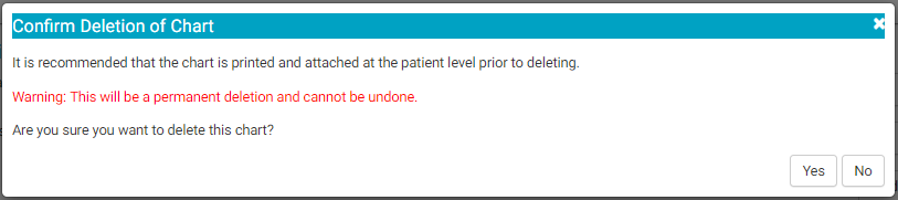 - Another final flyout will appear to confirm the deletion of the chart. Remember, the deletion is permanent, and any data deleted cannot be retrieved!