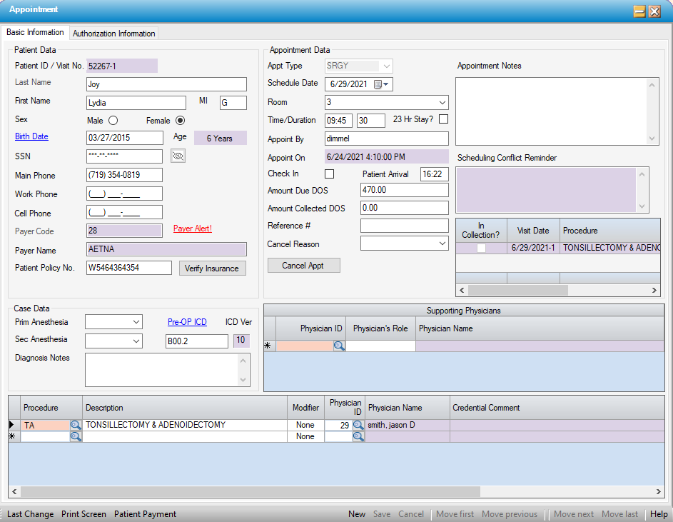 Appointment Basic Information Tab