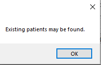 HST Practice Management will give warnings upon finding several types of conflicts. If it finds a match between patient name or DOB entered on a new appointment, a pop-up screen will display the existing patient(s). To select the patient it has found and pull existing demographics, click on the grey block to retrieve. If the patient is not a duplicate (such as when it's the same DOB but a different patient), simply "X" out of the warning window and proceed with data entry.