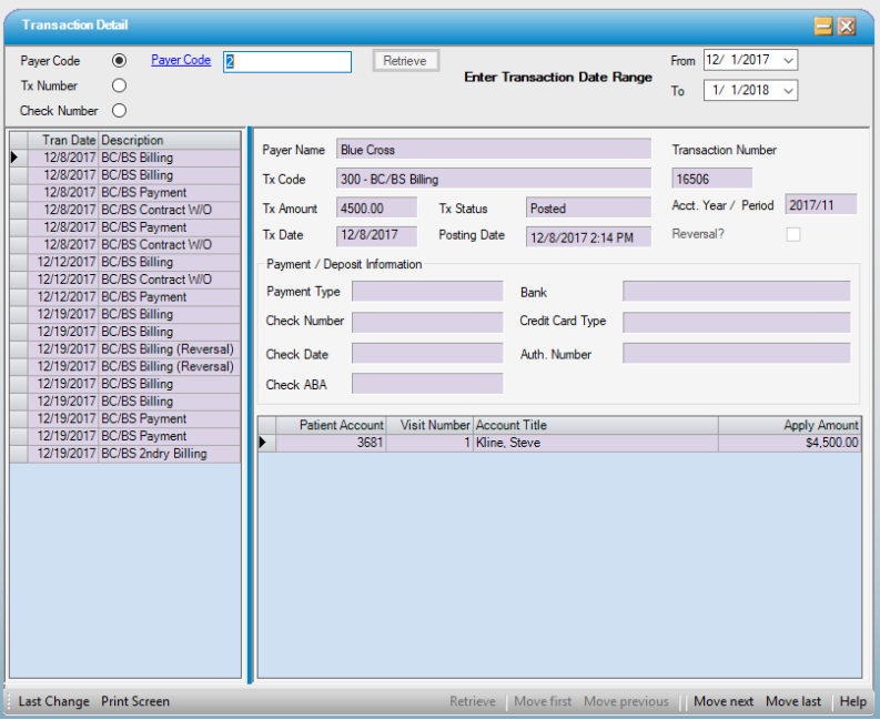 Use this form to search for transactions by Payer Code, Transaction Number, or Check Number.